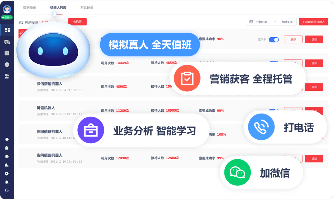 通过在线客服,智能营销机器人,呼叫宝,云客助手完成线上全渠道全周期业务拓展,增加获客渠道,提升企业产品服务销售业绩。