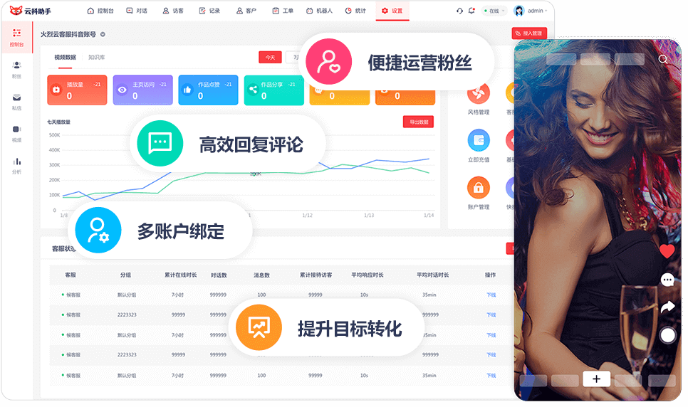 多账号管理 / 粉丝管理 / 批量回复 / 评论管理 / 多功能抖音企业号管理软件