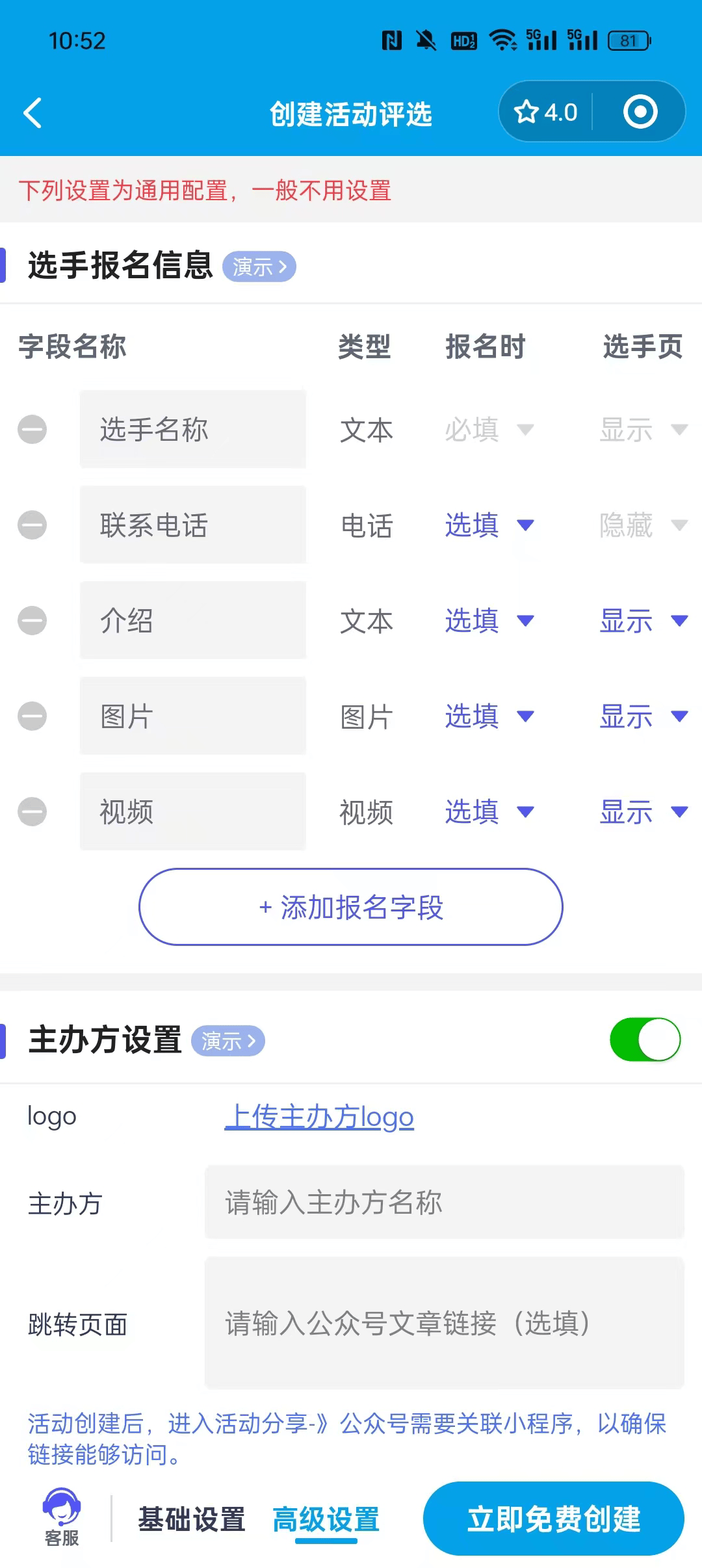 完成以上信息填写并确认无误后,点击“立即创建”按钮,即可成功创建投票活动。