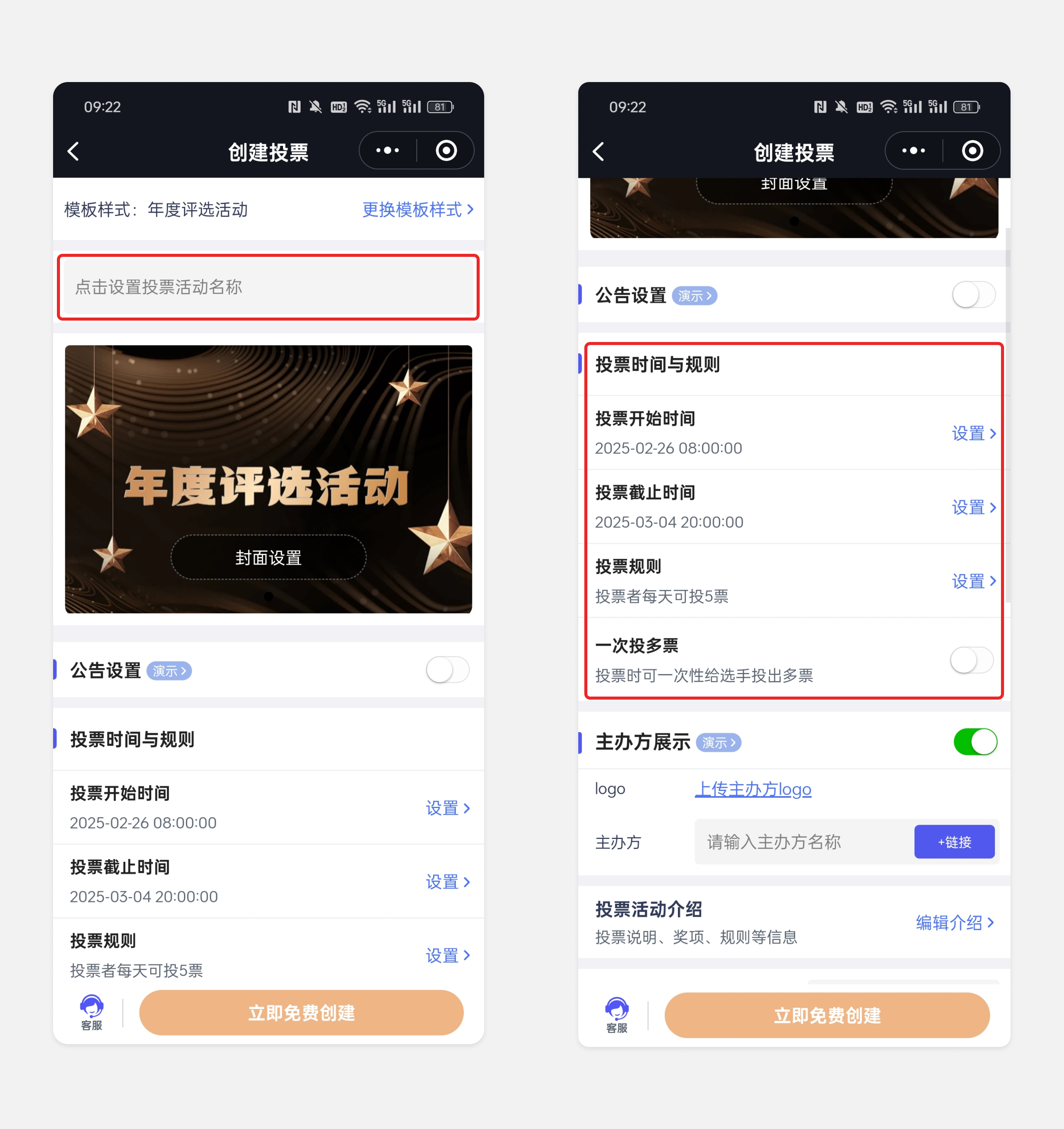 第二步:创建投票活动,按需设置,小白也能轻松填空